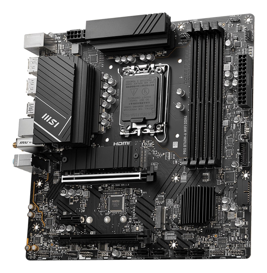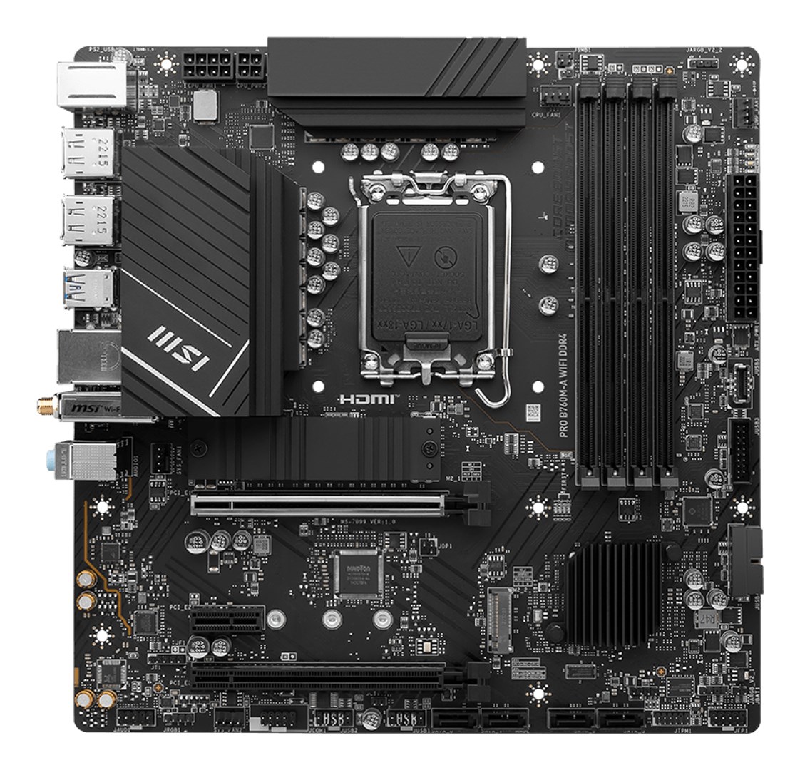 MSI PRO B760M-A WIFI DDR4 motherboard Intel B760 LGA 1700 micro ATX — compact, reliable and ready for everyday tasks.